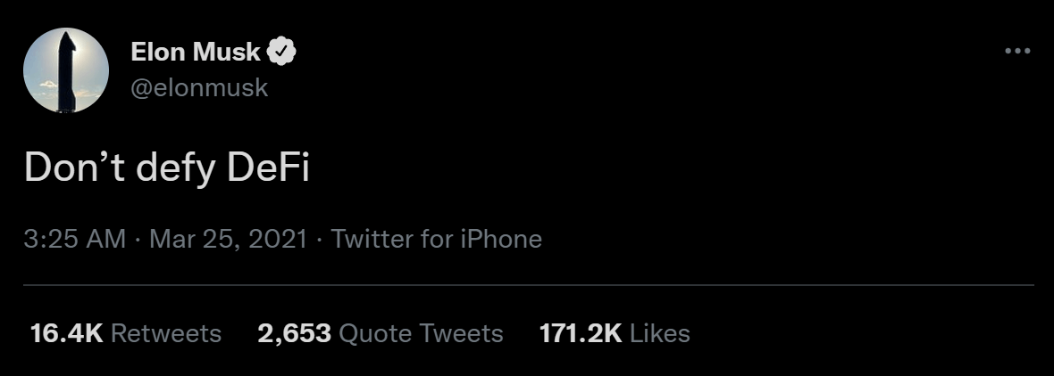 And only DeFi – plus honest, hardworking, patriotic Americans like you and I…