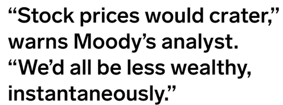Experts like Moody’s Analytics chief economist Mark Zandi agree that government default would have dire economic consequences.